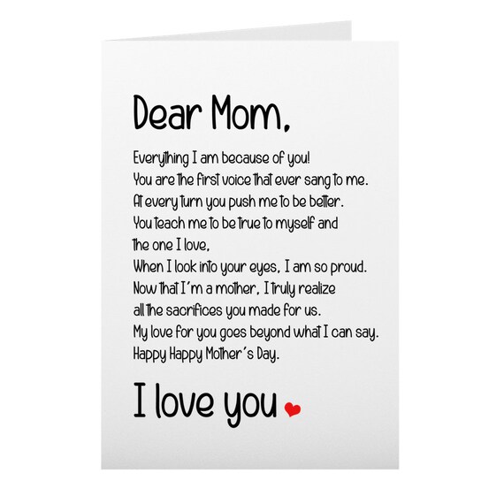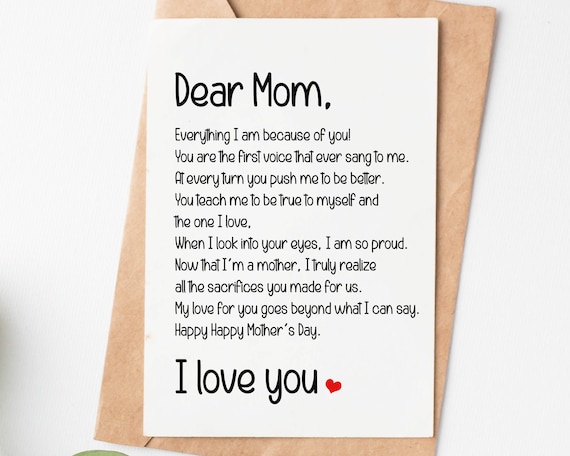 Dear Mom Card I Love You Card For Mom Mothers Day Card Etsy Canada